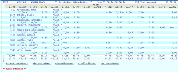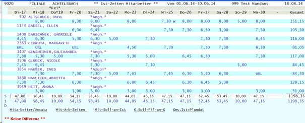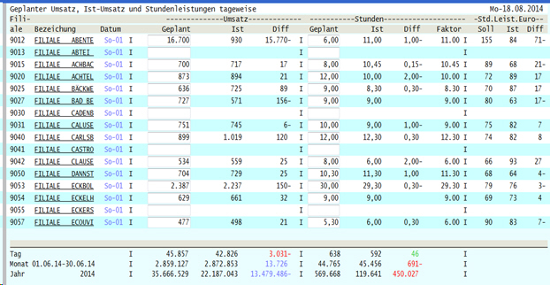 der Filialen, die geleisteten Stunden Mitarbeiter Filiale sowie