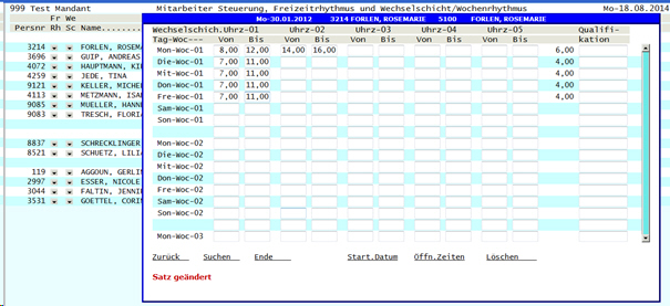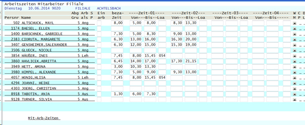 In diese Tabelle können die Arbeitszeiten der Mitarbeiter automatisch oder manuell übernommen und auch bear-