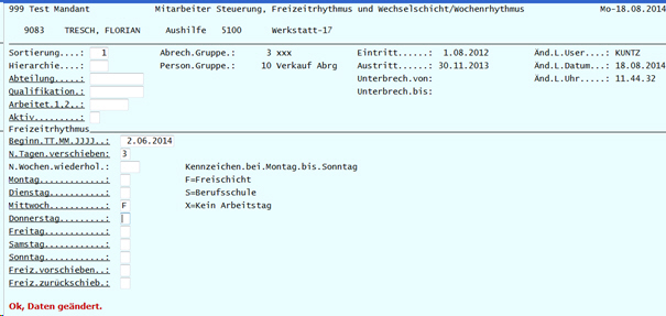Des Weiteren werden auch Plandaten wie Urlaub, Krank, Berufschule etc. hier abgebildet.