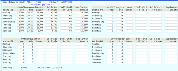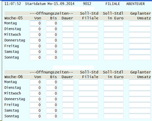 Soll eine Filiale geplant werden, so muss man je Filiale in den nachfolgenden Tabellen Parameter hinterlegen.