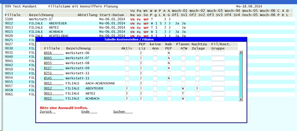 2. In Tabelle "Kostenstellen / Filiale" in Personalzeit