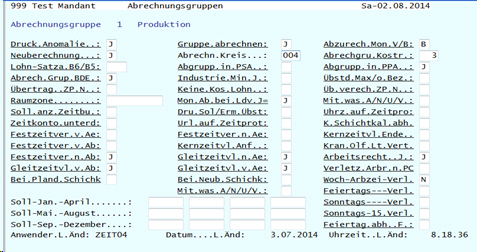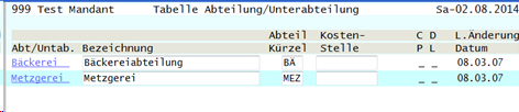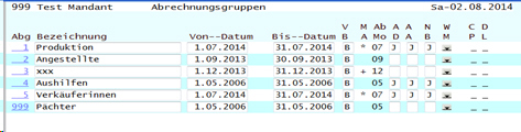 Abrechnungsgruppen Mitarbeiter Maske-01 Abteilung / Unterabteilung