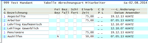 Abrechnungsarten Mitarbeiter