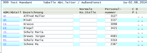Abrechnungsgruppen Mitarbeiter Maske-02 Abteilungsleiter / Außendienst Mitarbeiter