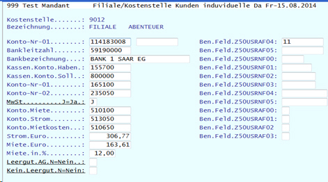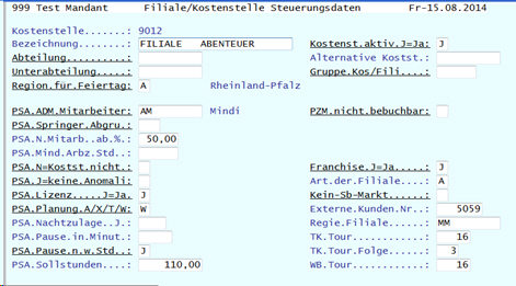 Fililale / Kostenstellen Steuerungsdaten Fililale / Kostenstellen individuelle Daten